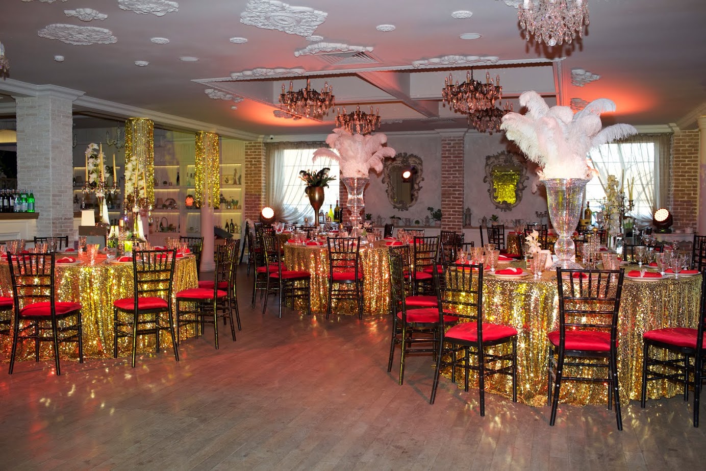 Ресторан идеально подойдет для проведения любого торжества, например, свадьбы, дня рождения, именин, детских праздников и корпоративов. Пространство поделено на 3 зала, каждый из которых рассчитан на разное количество гостей (20/45/130), благодаря чему гости могут выбрать как место для шумного празднования, так и для тихого семейного вечера.