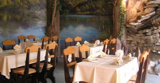 На первом этаже гостиницы «Форт Эврика» расположился необычный ресторан «Водолей». Воформлении ресторана использовано дерево, камень имного зелени, арядом находится небольшой водоем, изкоторого посетители сами могут выловить свежую рыбу длявыбранного блюда. Впросторном VIP-зале сживой музыкой можно проводить различные торжественные обеды иужины. Вежливый персонал ресторана ишеф-повар позаботятся отом, чтобы еда иобслуживание были навысшем уровне. Влетнее время приресторане работаетбар, выполненный встиле пещерного грота саквариумом винтерьере.