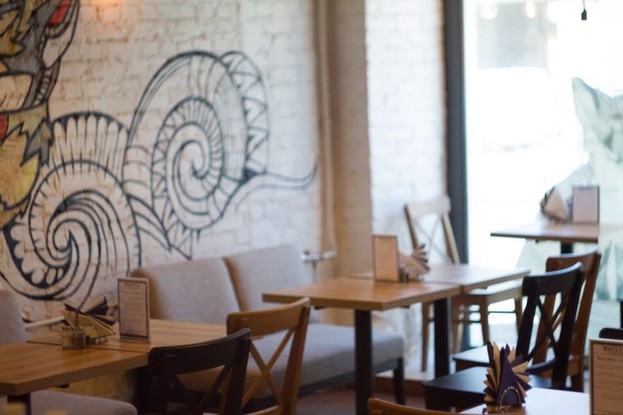 Кафе из серии «все, всем и сразу». До полудня готовят завтраки, до 16:00 предлагают ланчи, поздним гостям (после 19:00) бонусом преподносят бокал вина. За стритфуд в меню отвечают тортильи и чиабатты с разными начинками, для легкого перекуса есть «Цезари» и «Греческий», девушкам предложат 3 вида пасты, мужчинам подойдет стейк или бефстроганов (правда, почему-то из курицы), альтернативой вегетарианскому гаспачо станут мясной копченый суп и сицилийский морепродуктовый. В карте напитков отличился кофейный раздел: помимо классики, бариста варят острый, апельсиновый и солено-ореховый кофе, холодный черничный капучино и сливочный латте-айс.