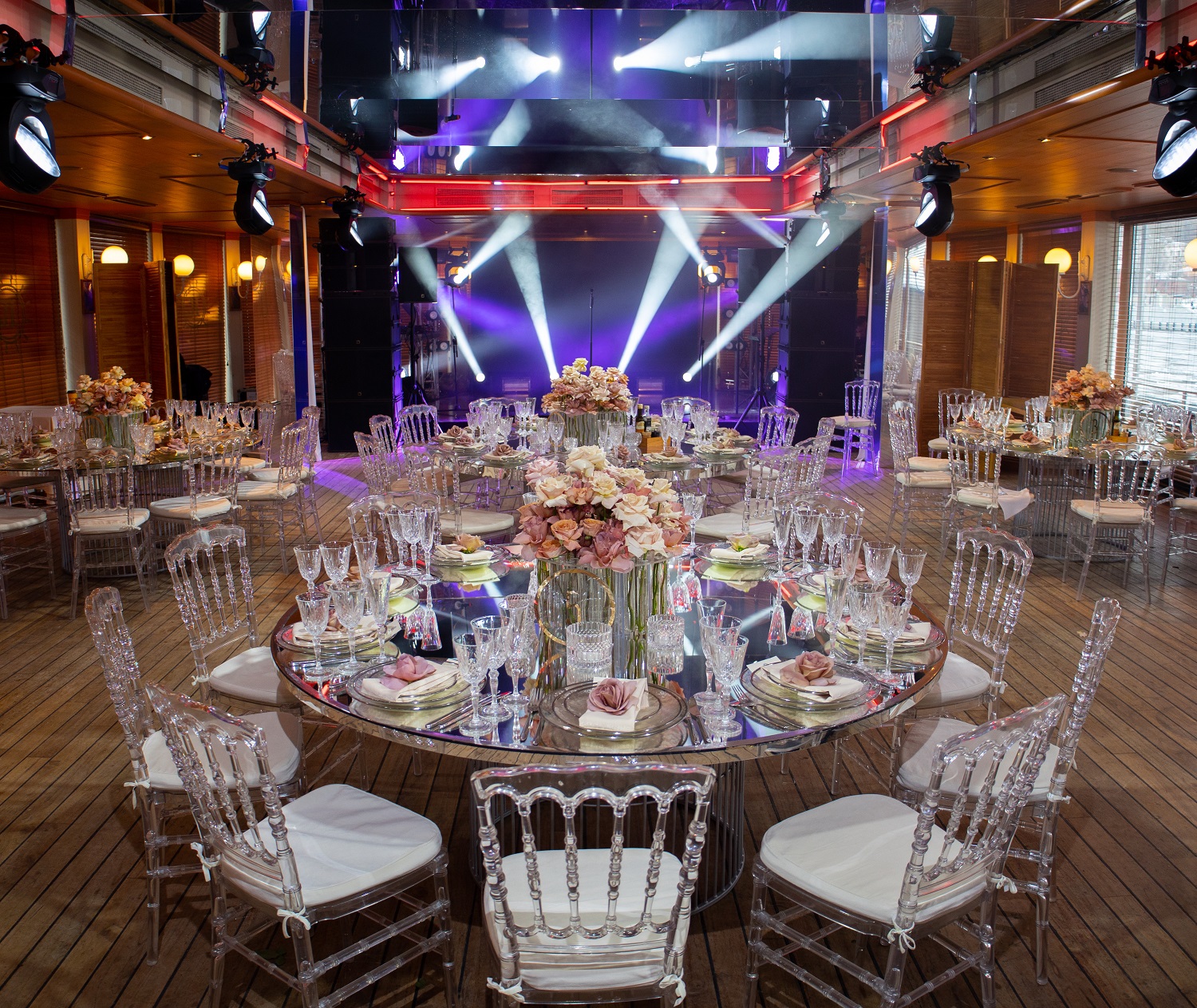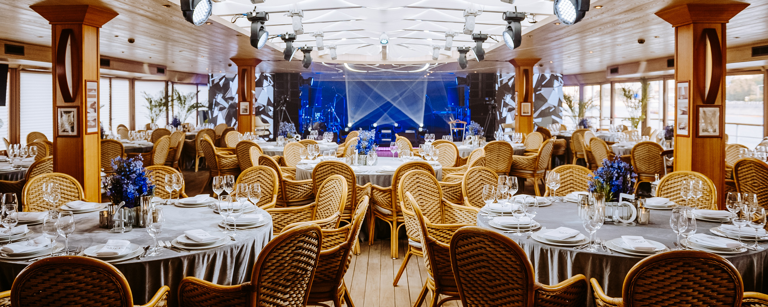 2роскошных корабля, в любой момент готовых отправиться в плавание, 8автономных залов вместимостью от 10 до 300 гостей, 7вип-комнат - бортаYacht Event не без причины многообещающе заявили о себе как о первоклассных площадках для важных событий. Комфорт гостей здесь превыше всего: бесплатная парковка с сервисом valet parking, локальная банкетная служба гарантированно поможет с организацией мероприятия «под ключ» благодаря сотрудничеству с ведущими event/wedding-агентствами и декораторами.
