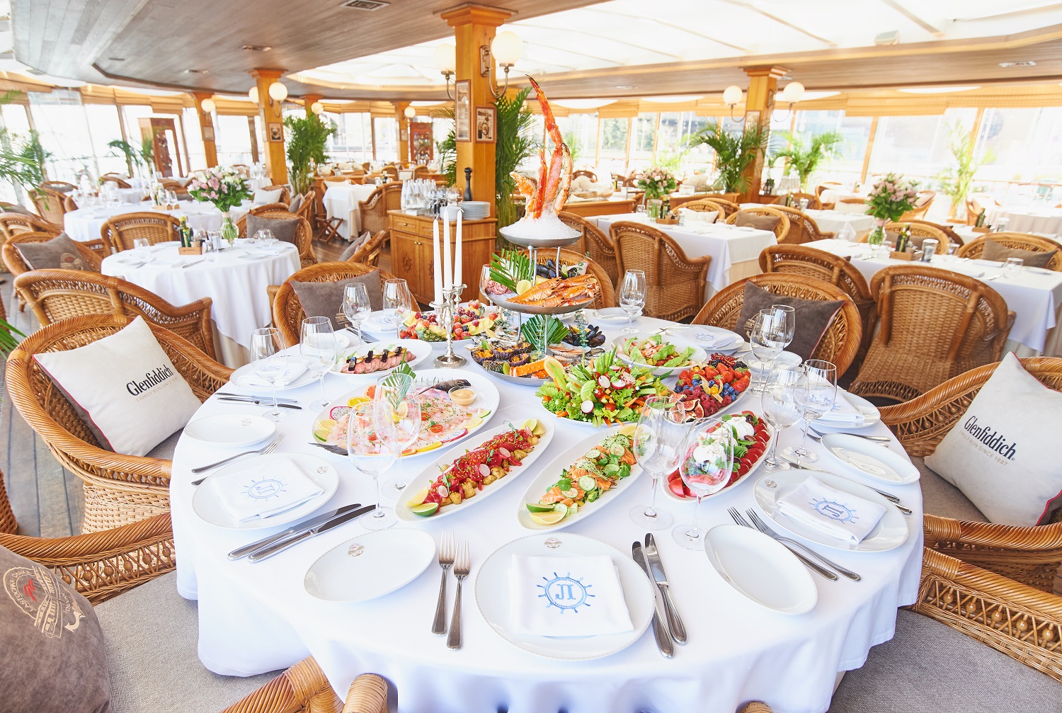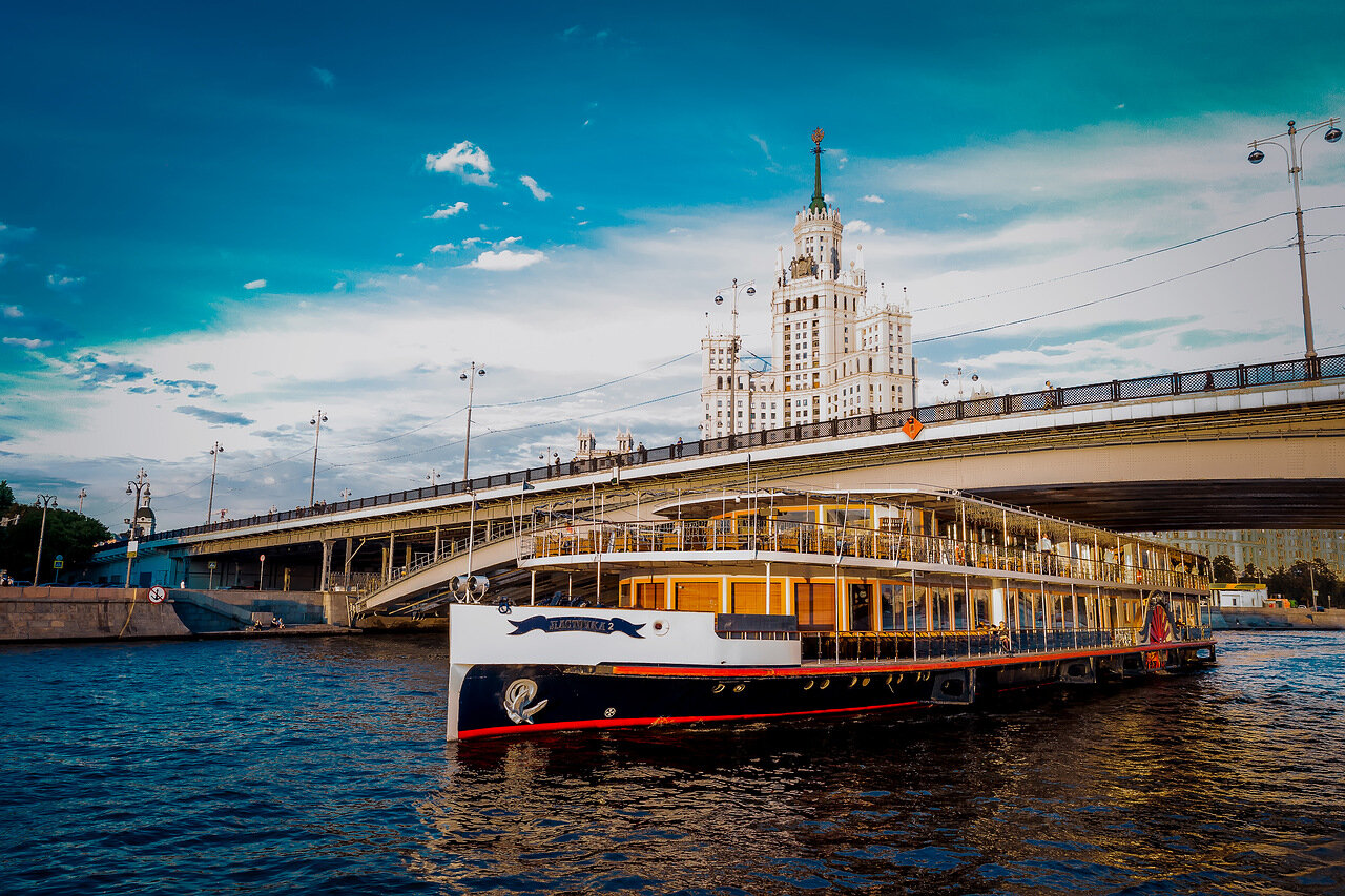 Первый корабль, фешенебельная яхта «Чайка», бросил якорь на Краснопресненской набережной напротив Центра международной торговли. Слева на нижней палубе находится просторный банкетный зал, общей площадью 250 м2– поистине идеальное место для самых ярких событий и банкета до 150 персон. Справа – зал «Салон», вмещающий до 80 человек фуршетом и до 40 гостей банкетной рассадкой. Если же гости хотят собраться узким кругом, самыми близкими друзьями до 10 человек, то в их распоряженииодин из двух предложенных вип-кабинетов. А для любителей ощущения морского бриза и панорамных видов – на башни Сити или гостиницу Украину на верхней палубе предоставляются аж два пространства: мягкий зал, комфортно размещающий до 300 гостей фуршетной рассадкой и до 200 человек банкетом; и всесезонная веранда, легко трансформировавшаяся в открытую площадку на воде.