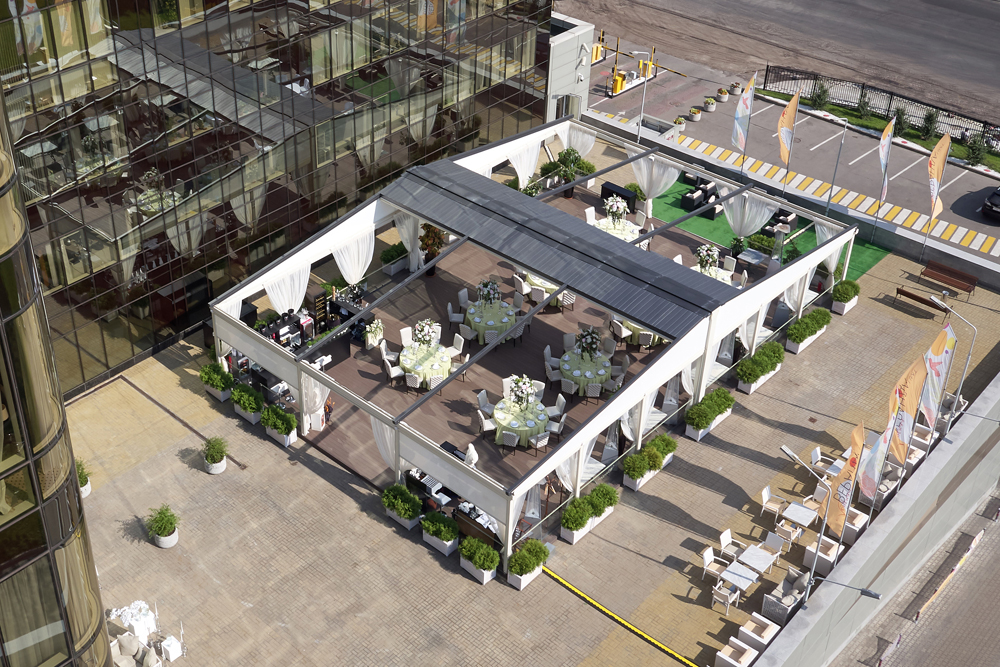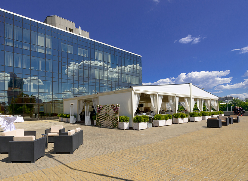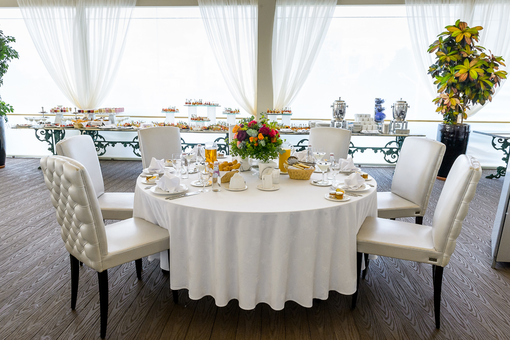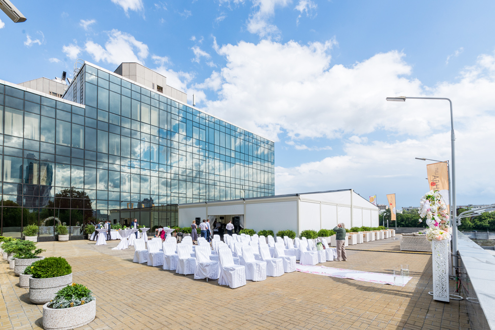 С нами вы можете организовать торжество в рамках одной локации — панорамные залы, летняя веранда, премиальный банкетный сервис, номера для молодожёнов в отеле 5*, удобная транспортная развязка и захватывающие виды на Москву.