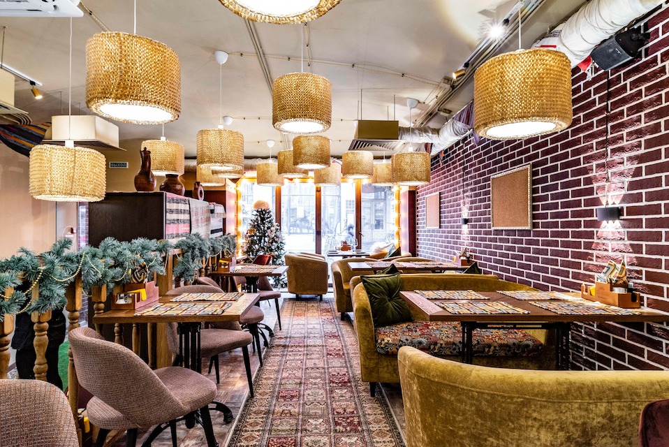 Ресторан «Жарим по-грузински» с порога очаровывает кавказским колоритом и окутывает теплом домашнего уюта. Яркие ковры и тканые салфетки с этническим узором, элементы национальных костюмов и плетёные абажуры — только пейзаж за панорамными, в пол, окнами и напоминает о том, что вы всё ещё в российской столице, а не в радушном тбилисском доме, где в честь дорогих гостей вот-вот начнётся шумное и изобильное застолье.
