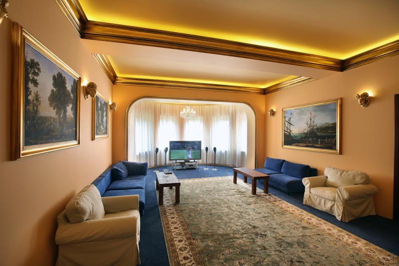 Сдержанный интерьер дает широкие возможности для воплощения идей декораторов.