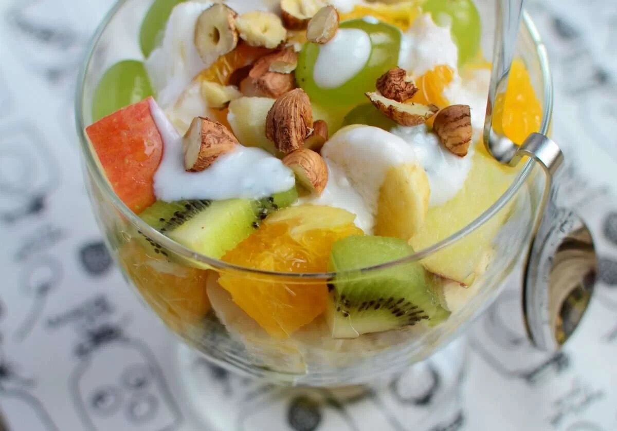 5. Фруктовый салат с йогуртовой заправкой (количество всех ингредиентов по вкусу)