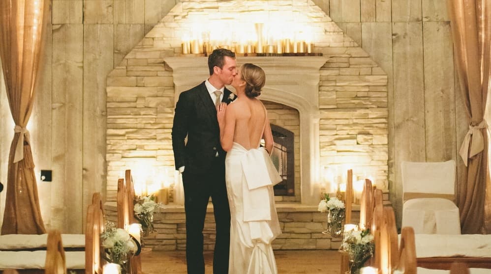 Если хочется природы, но погода не позволяет быть на открытом воздухе, можно выбрать усадьбу с прозрачным шатром или ресторан с панорамными окнами. Например, Иван и Алина праздновали свадьбу в загородном клубе: церемония прошла в зале с видом на заснеженный лес, а после гости переместились в шатёр с подогревом, где их ждали пледы, глинтвейн и даже мини-костёр чтоб пожарить зефирки.