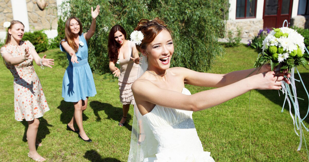 Миф: Если кинуть букет не так — одной рукой, то следующая замуж не выйдет.