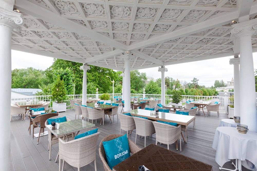 Наш ресторан — это белоснежное архитектурное великолепие сталинского ампира, воздушные интерьеры в небесно-голубых тонах и панорамные окна, открывающие вид на один из самых роскошных парков Москвы. Мы создаём атмосферу, которая трогательно возвращает в элегантную эпоху 50-х годов прошлого века, оставаясь актуальной для самого взыскательного гостя.